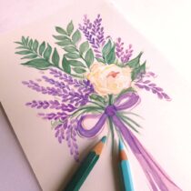 Linha de convites inspirada nos campos de lavanda em Provence, onde delicados tons de lilás e azul dão movimento e graça à aquarela.