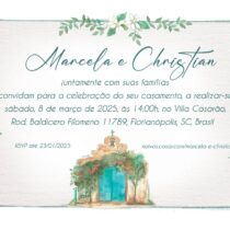 Linha de convites inspirada na Villa Casarão, com sua delicada capela, vista para o mar e Primaveras.